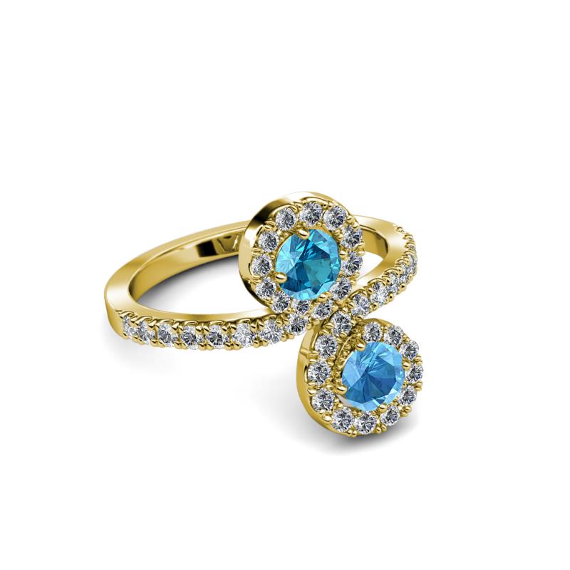 Blue Topaz and London Blue Topaz 2 Stone with Side Diamonds Womens Bypass Engagement Ring 1.26 ctw 14K Yellow Gold More Details ...