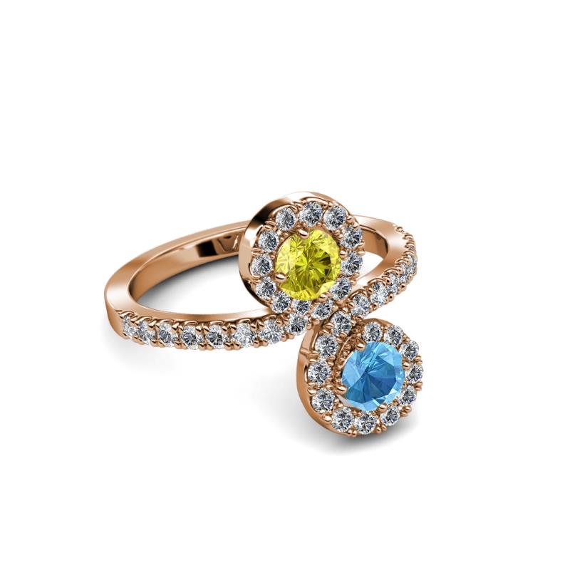 Blue Topaz and Yellow Diamond 2 Stone with Side Diamonds Womens Bypass Engagement Ring 1.23 ctw 14K Rose Gold More Details ...