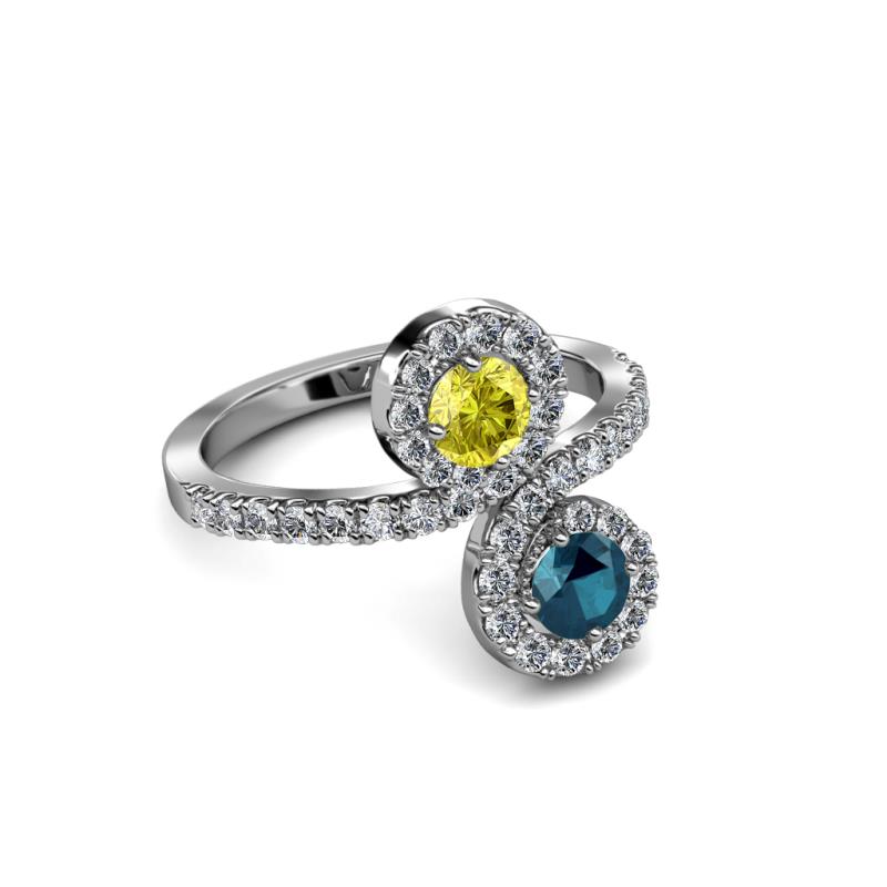 Blue and Yellow Diamond 2 Stone with Side Diamonds Womens Bypass Engagement Ring 1.20 ctw 14K White Gold More Details ...