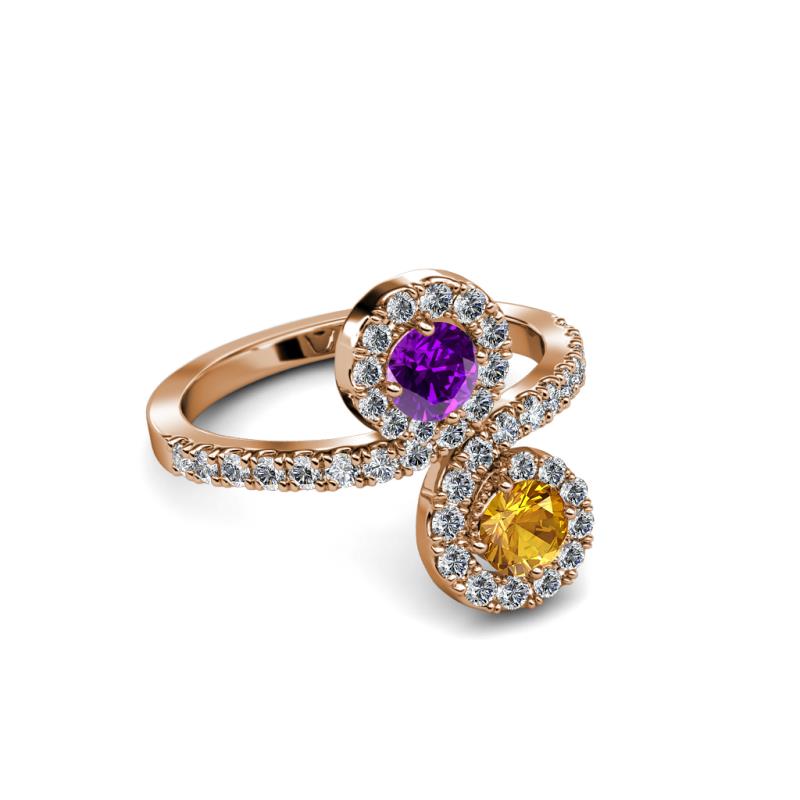 Citrine and Amethyst 2 Stone with Side Diamonds Womens Bypass Engagement Ring 1.23 ctw 14K Rose Gold More Details ...