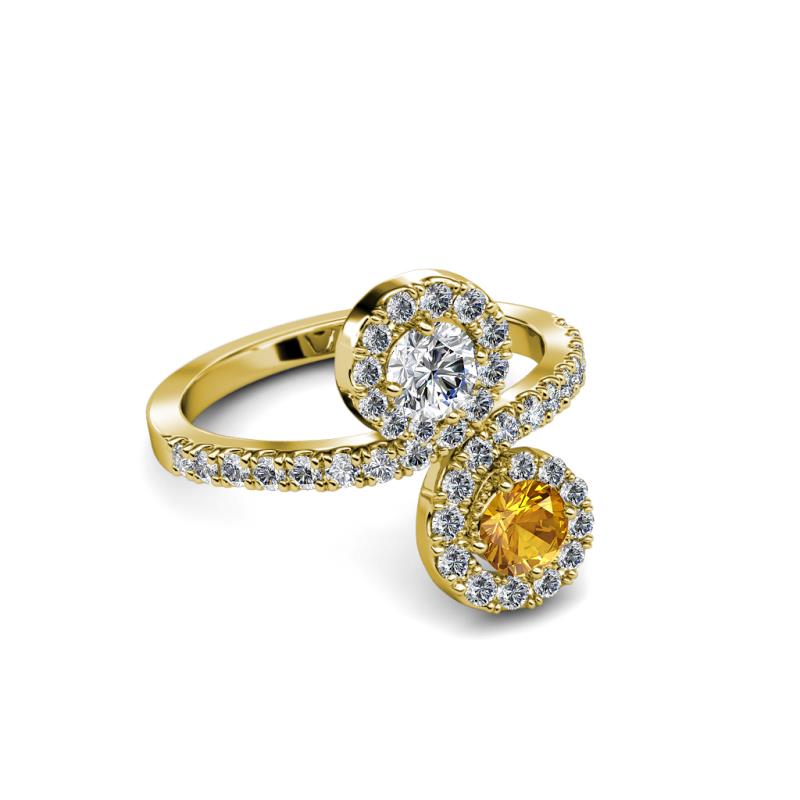 Citrine and Diamond 2 Stone with Side Diamonds Womens Bypass Engagement Ring 1.22 ctw 14K Yellow Gold More Details ...