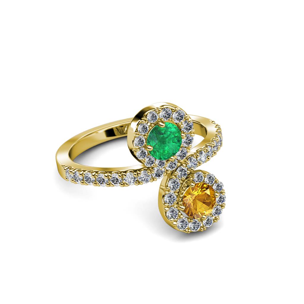 Citrine and Emerald 2 Stone with Side Diamonds Womens Bypass Engagement Ring 1.23 ctw 14K Yellow Gold More Details ...