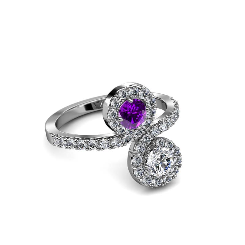 Diamond and Amethyst 2 Stone with Side Diamonds Womens Bypass Engagement Ring 1.22 ctw 14K White Gold More Details ...