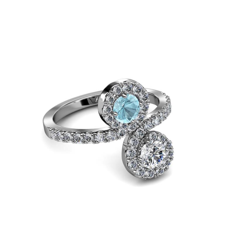 Diamond and Aquamarine 2 Stone with Side Diamonds Womens Bypass Engagement Ring 1.22 ctw 14K White Gold More Details ...