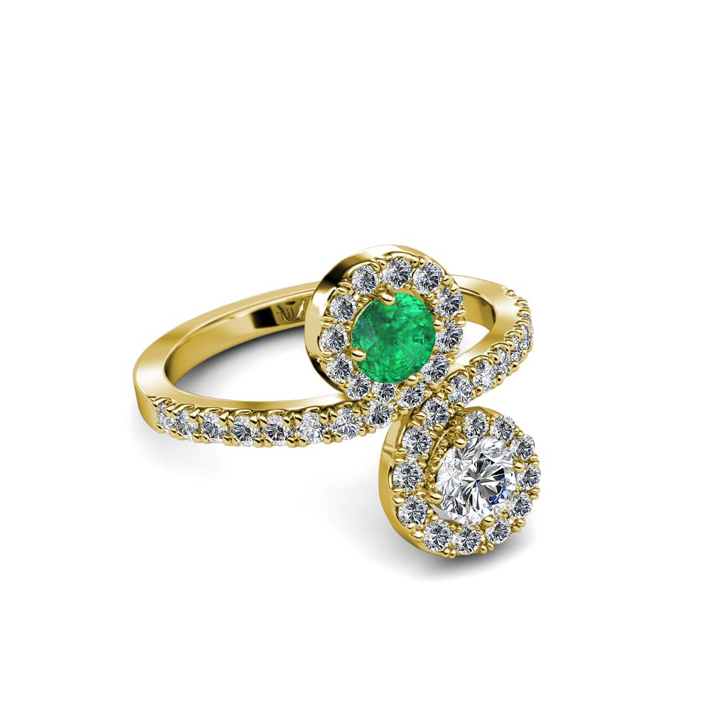 Diamond and Emerald 2 Stone with Side Diamonds Womens Bypass Engagement Ring 1.22 ctw 14K Yellow Gold More Details ...