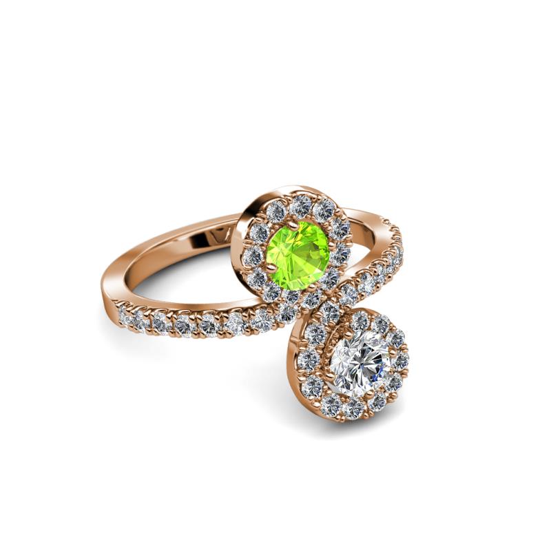 Diamond and Peridot 2 Stone with Side Diamonds Womens Bypass Engagement Ring 1.25 ctw 14K Rose Gold More Details ...