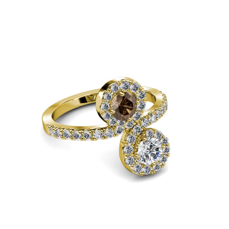 Diamond and Smoky Quartz 2 Stone with Side Diamonds Womens Bypass Engagement Ring 1.19 ctw 14K Yellow Gold More Details ...