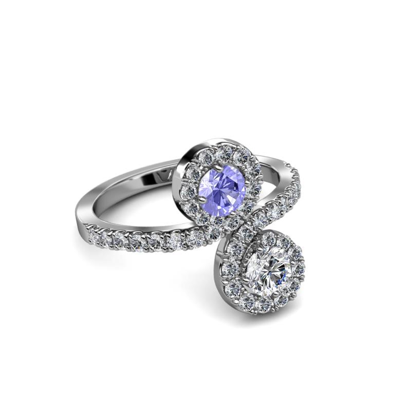 Diamond and Tanzanite 2 Stone with Side Diamonds Womens Bypass Engagement Ring 1.19 ctw 14K White Gold More Details ...