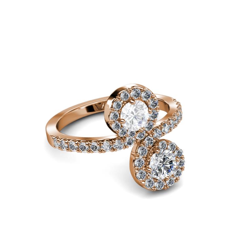 Diamond and White Sapphire 2 Stone with Side Diamonds Womens Bypass Engagement Ring 1.22 ctw 14K Rose Gold More Details ...