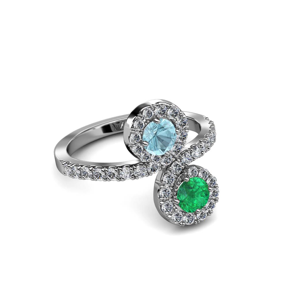 Emerald and Aquamarine 2 Stone with Side Diamonds Womens Bypass Engagement Ring 1.23 ctw 14K White Gold More Details ...