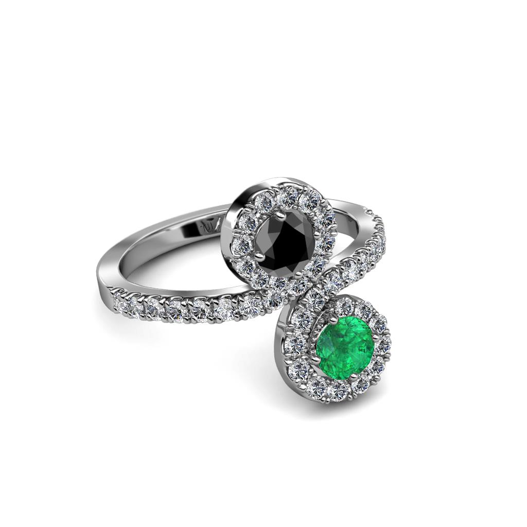 Emerald and Black Diamond 2 Stone with Side Diamonds Womens Bypass Engagement Ring 1.27 ctw 14K White Gold More Details ...