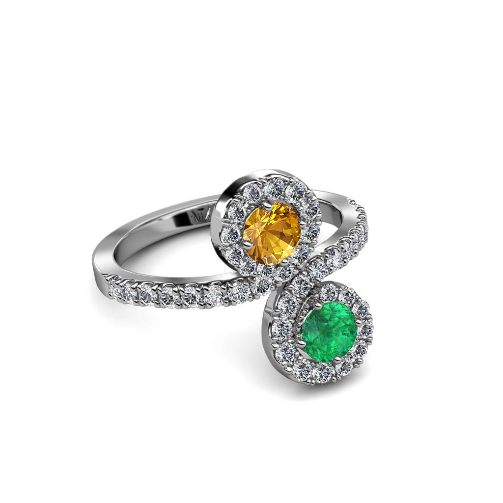 Emerald and Citrine 2 Stone with Side Diamonds Womens Bypass Engagement Ring 1.23 ctw 14K White Gold More Details ...