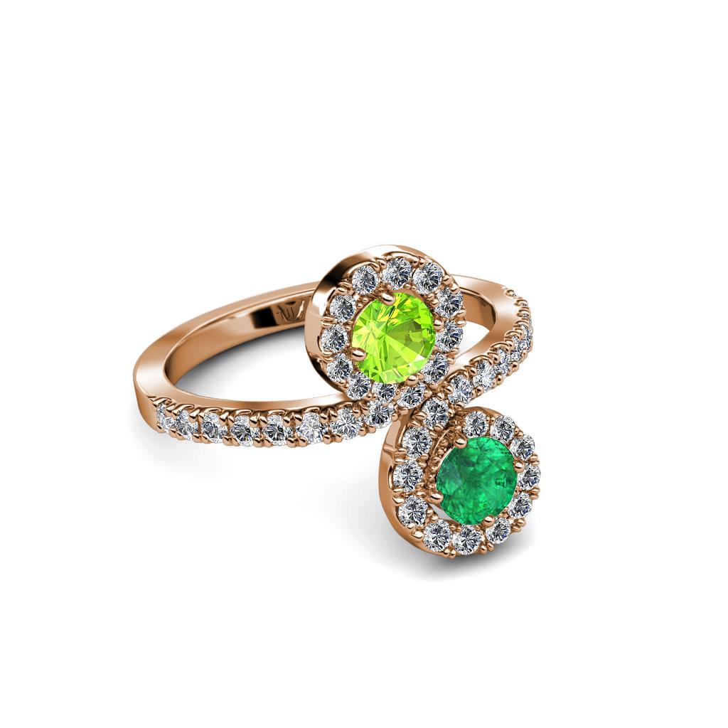 Emerald and Peridot 2 Stone with Side Diamonds Womens Bypass Engagement Ring 1.26 ctw 14K Rose Gold More Details ...