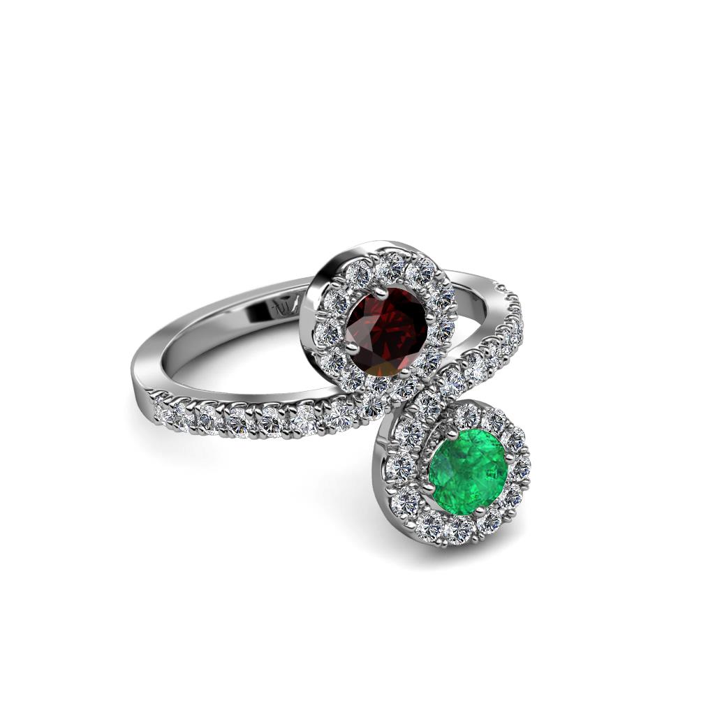 Emerald and Red Garnet 2 Stone with Side Diamonds Womens Bypass Engagement Ring 1.26 ctw 14K White Gold More Details ...