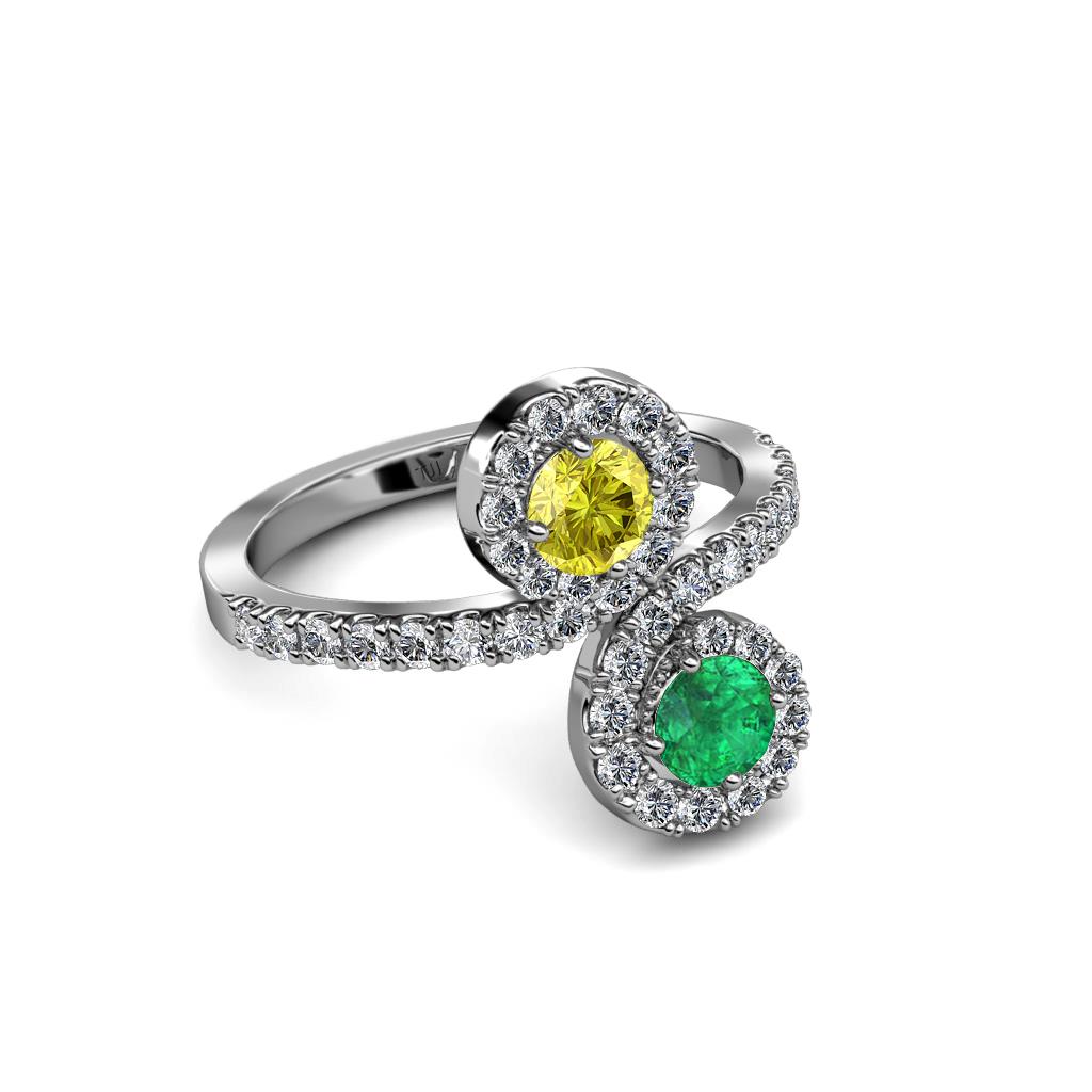 Emerald and Yellow Diamond 2 Stone with Side Diamonds Womens Bypass Engagement Ring 1.22 ctw 14K White Gold More Details ...