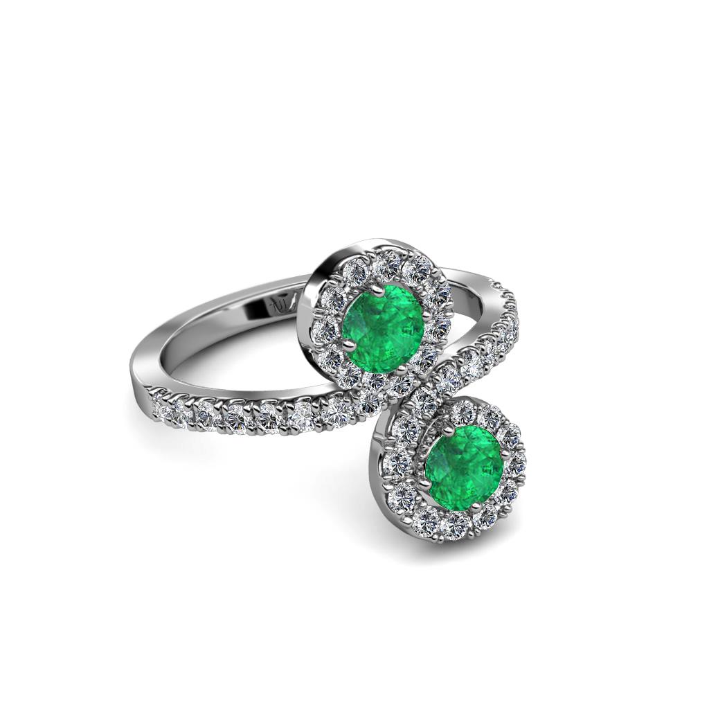 Emerald 2 Stone with Side Diamonds Womens Bypass Engagement Ring 1.23 ctw 14K White Gold More Details ...