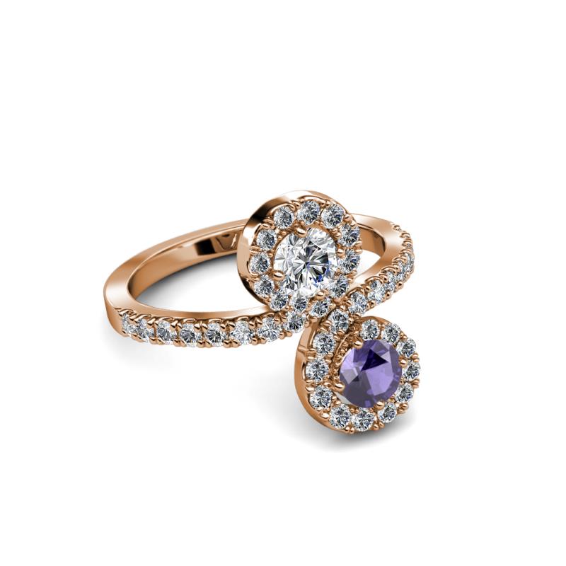 Iolite and Diamond 2 Stone with Side Diamonds Womens Bypass Engagement Ring 1.22 ctw 14K Rose Gold More Details ...