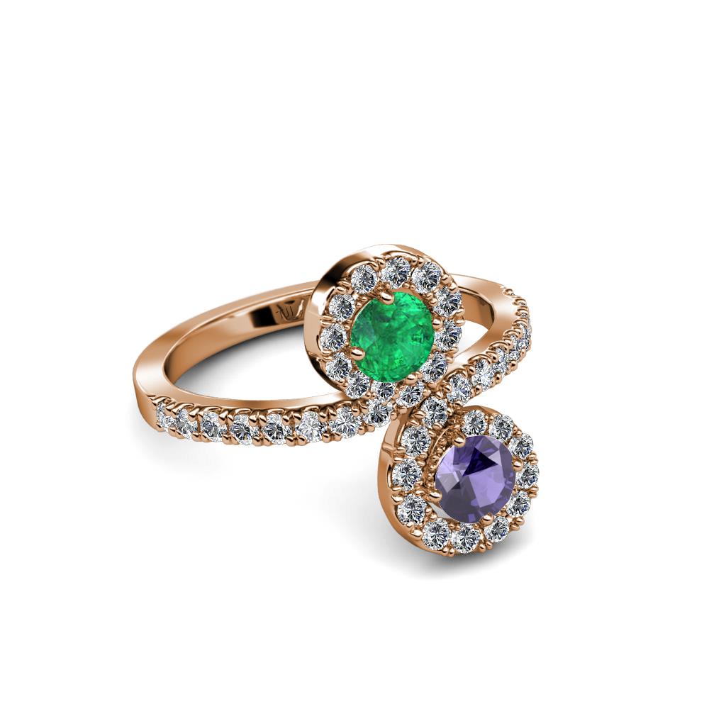 Iolite and Emerald 2 Stone with Side Diamonds Womens Bypass Engagement Ring 1.23 ctw 14K Rose Gold More Details ...
