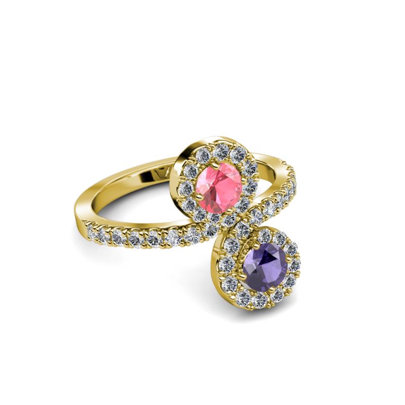 Iolite and Pink Tourmaline 2 Stone with Side Diamonds Womens Bypass Engagement Ring 1.23 ctw 14K Yellow Gold More Details ...