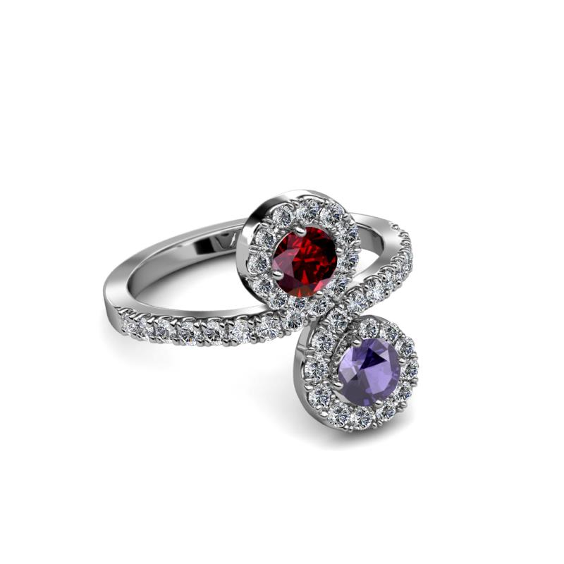 Iolite and Ruby 2 Stone with Side Diamonds Womens Bypass Engagement Ring 1.23 ctw 14K White Gold More Details ...