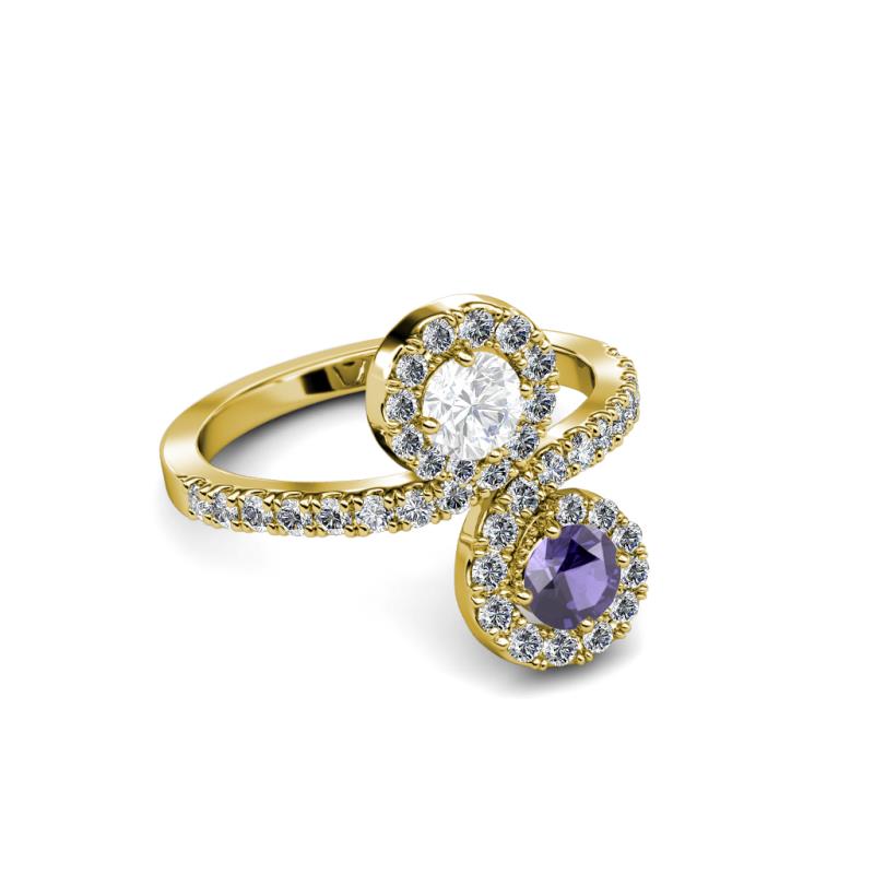 Iolite and White Sapphire 2 Stone with Side Diamonds Womens Bypass Engagement Ring 1.23 ctw 14K Yellow Gold More Details ...