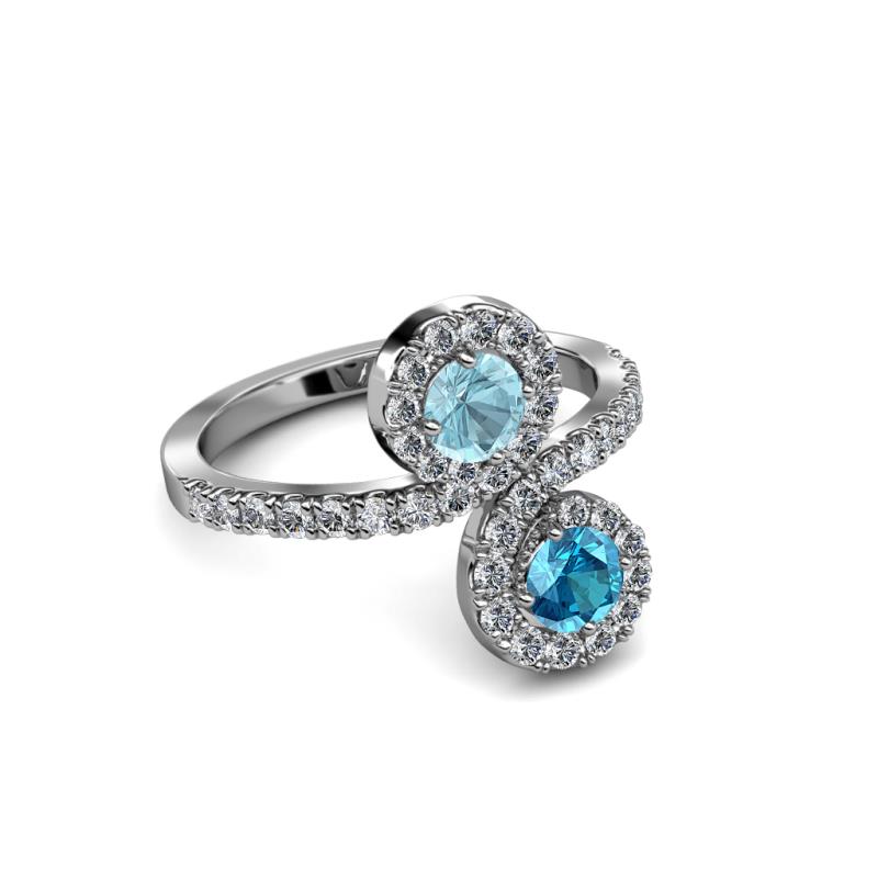 London Blue Topaz and Aquamarine 2 Stone with Side Diamonds Womens Bypass Engagement Ring 1.25 ctw 14K White Gold More Details ...