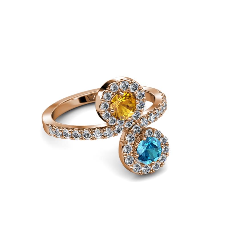 London Blue Topaz and Citrine 2 Stone with Side Diamonds Womens Bypass Engagement Ring 1.25 ctw 14K Rose Gold More Details ...
