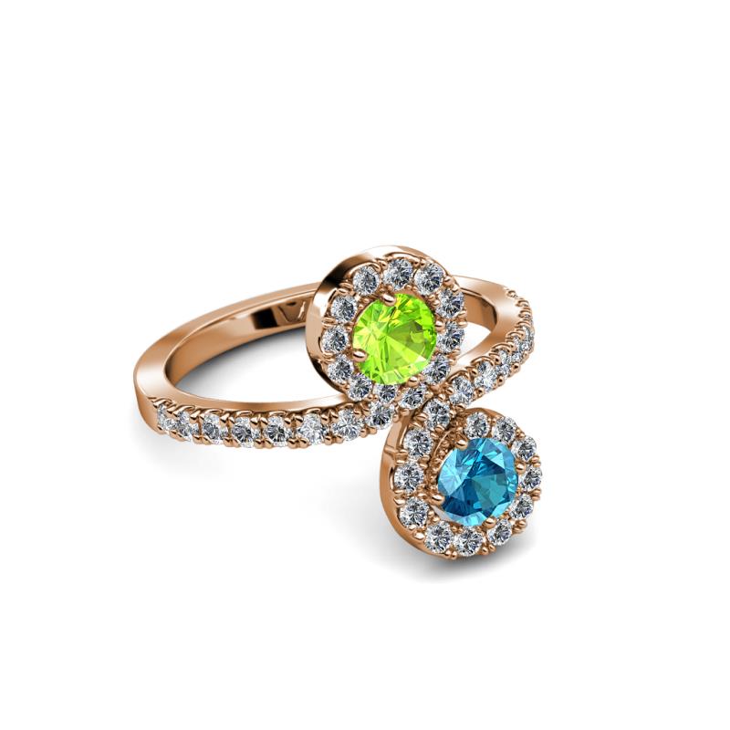 London Blue Topaz and Peridot 2 Stone with Side Diamonds Womens Bypass Engagement Ring 1.28 ctw 14K Rose Gold More Details ...