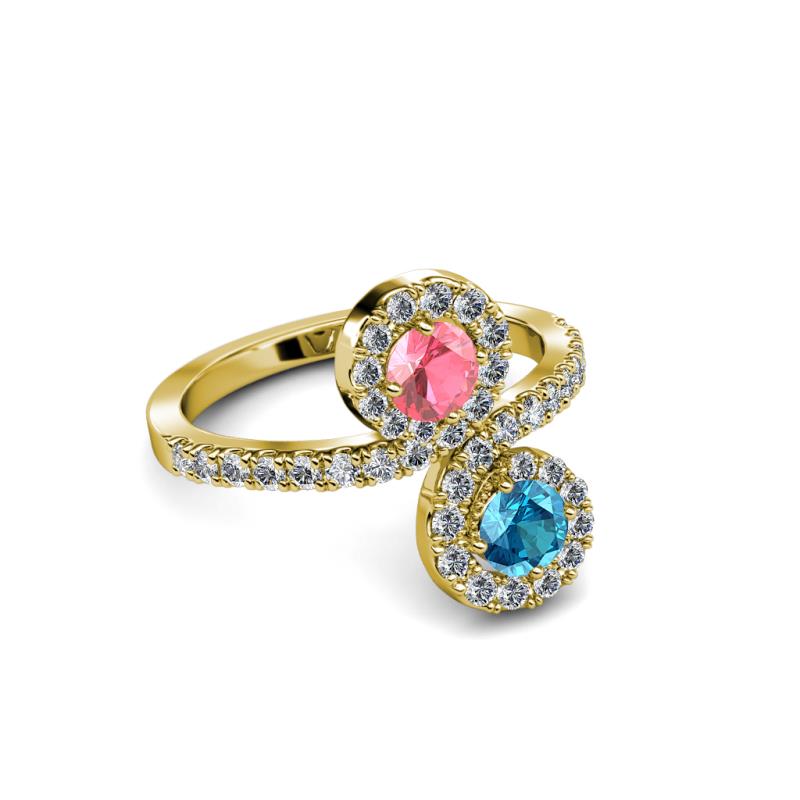 London Blue Topaz and Pink Tourmaline 2 Stone with Side Diamonds Womens Bypass Engagement Ring 1.25 ctw 14K Yellow Gold More Details ...