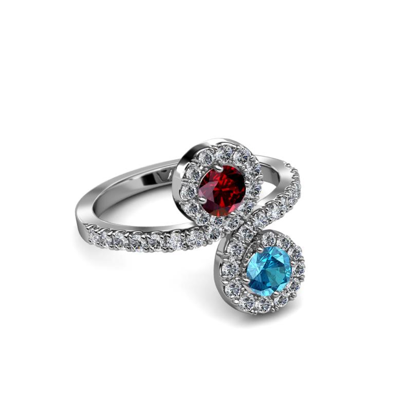 London Blue Topaz and Ruby 2 Stone with Side Diamonds Womens Bypass Engagement Ring 1.25 ctw 14K White Gold More Details ...
