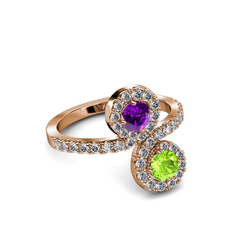 Peridot and Amethyst 2 Stone with Side Diamonds Womens Bypass Engagement Ring 1.26 ctw 14K Rose Gold More Details ...