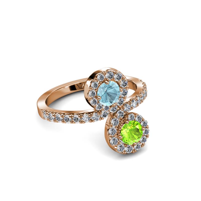 Peridot and Aquamarine 2 Stone with Side Diamonds Bypass Engagement Ring 1.26 Carat tw in 14K Rose Gold. More Details ...