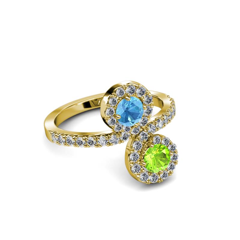 Peridot and Blue Topaz 2 Stone with Side Diamonds Womens Bypass Engagement Ring 1.28 ctw 14K Yellow Gold More Details ...