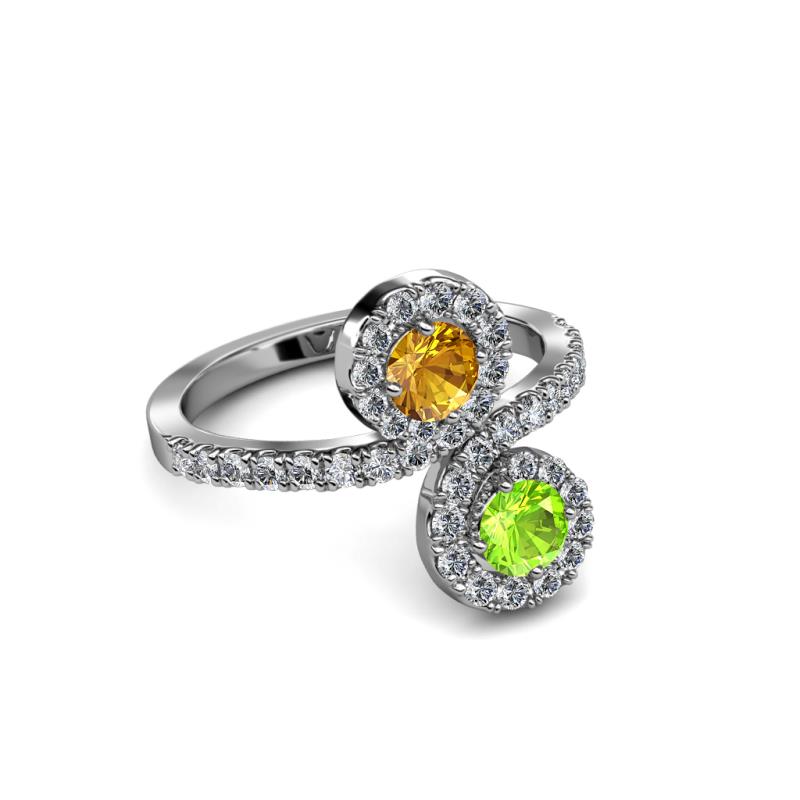Peridot and Citrine 2 Stone with Side Diamonds Womens Bypass Engagement Ring 1.26 ctw 14K White Gold More Details ...