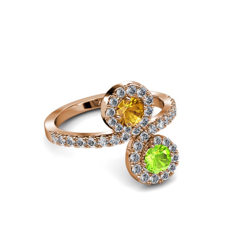 Peridot and Citrine 2 Stone with Side Diamonds Womens Bypass Engagement Ring 1.26 ctw 14K Rose Gold More Details ...