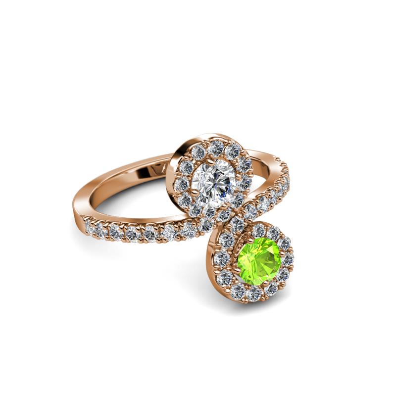 Peridot and Diamond 2 Stone with Side Diamonds Womens Bypass Engagement Ring 1.25 ctw 14K Rose Gold More Details ...