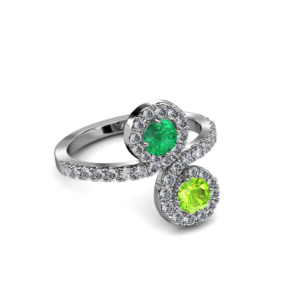 Peridot and Emerald 2 Stone with Side Diamonds Womens Bypass Engagement Ring 1.26 ctw 14K White Gold More Details ...