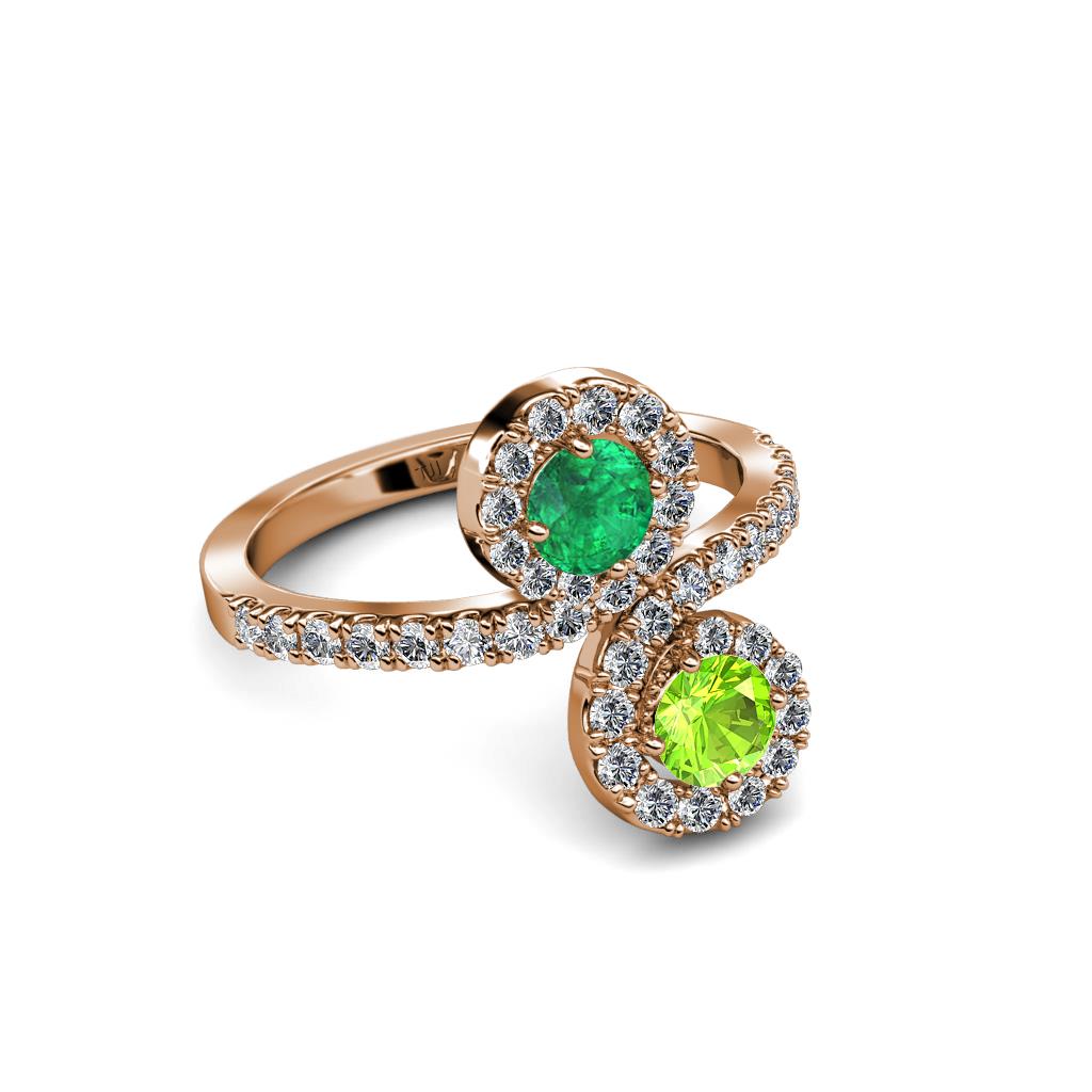 Peridot and Emerald 2 Stone with Side Diamonds Womens Bypass Engagement Ring 1.26 ctw 14K Rose Gold More Details ...
