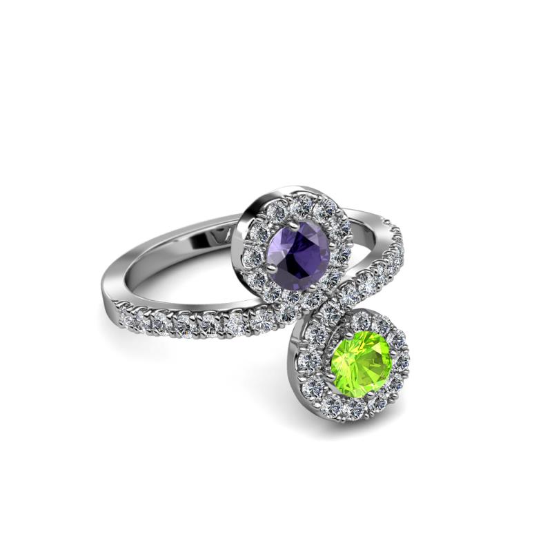 Peridot and Iolite 2 Stone with Side Diamonds Womens Bypass Engagement Ring 1.26 ctw 14K White Gold More Details ...