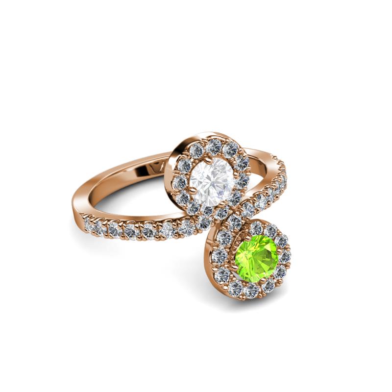 Peridot and White Sapphire 2 Stone with Side Diamonds Womens Bypass Engagement Ring 1.27 ctw 14K Rose Gold More Details ...