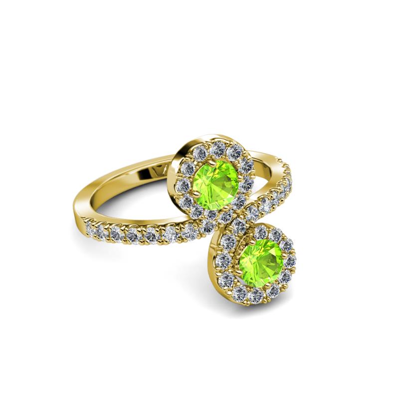 Peridot 2 Stone with Side Diamonds Womens Bypass Engagement Ring 1.30 ctw 14K Yellow Gold More Details ...