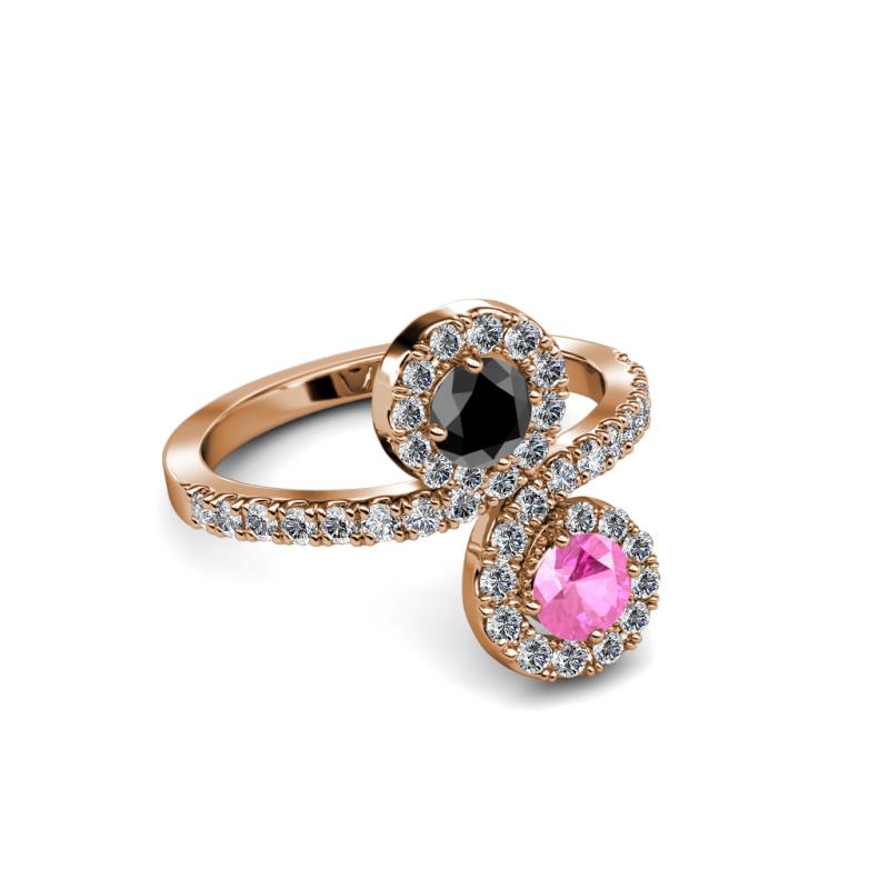 Pink Sapphire and Black Diamond 2 Stone with Side Diamonds Womens Bypass Engagement Ring 1.27 ctw 14K Rose Gold More Details ...