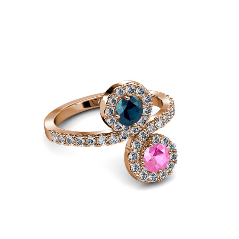 Pink Sapphire and Blue Diamond 2 Stone with Side Diamonds Womens Bypass Engagement Ring 1.22 ctw 14K Rose Gold More Details ...