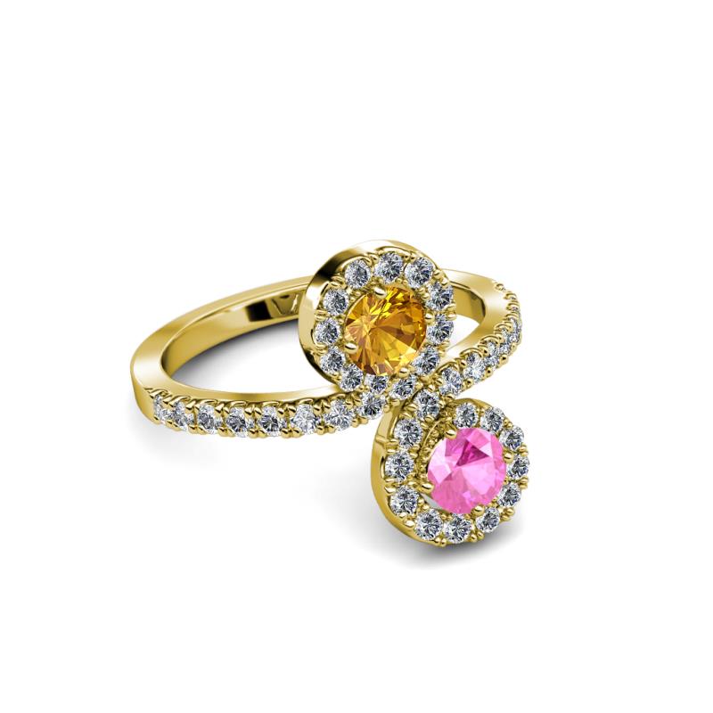 Pink Sapphire and Citrine 2 Stone with Side Diamonds Womens Bypass Engagement Ring 1.23 ctw 14K Yellow Gold More Details ...