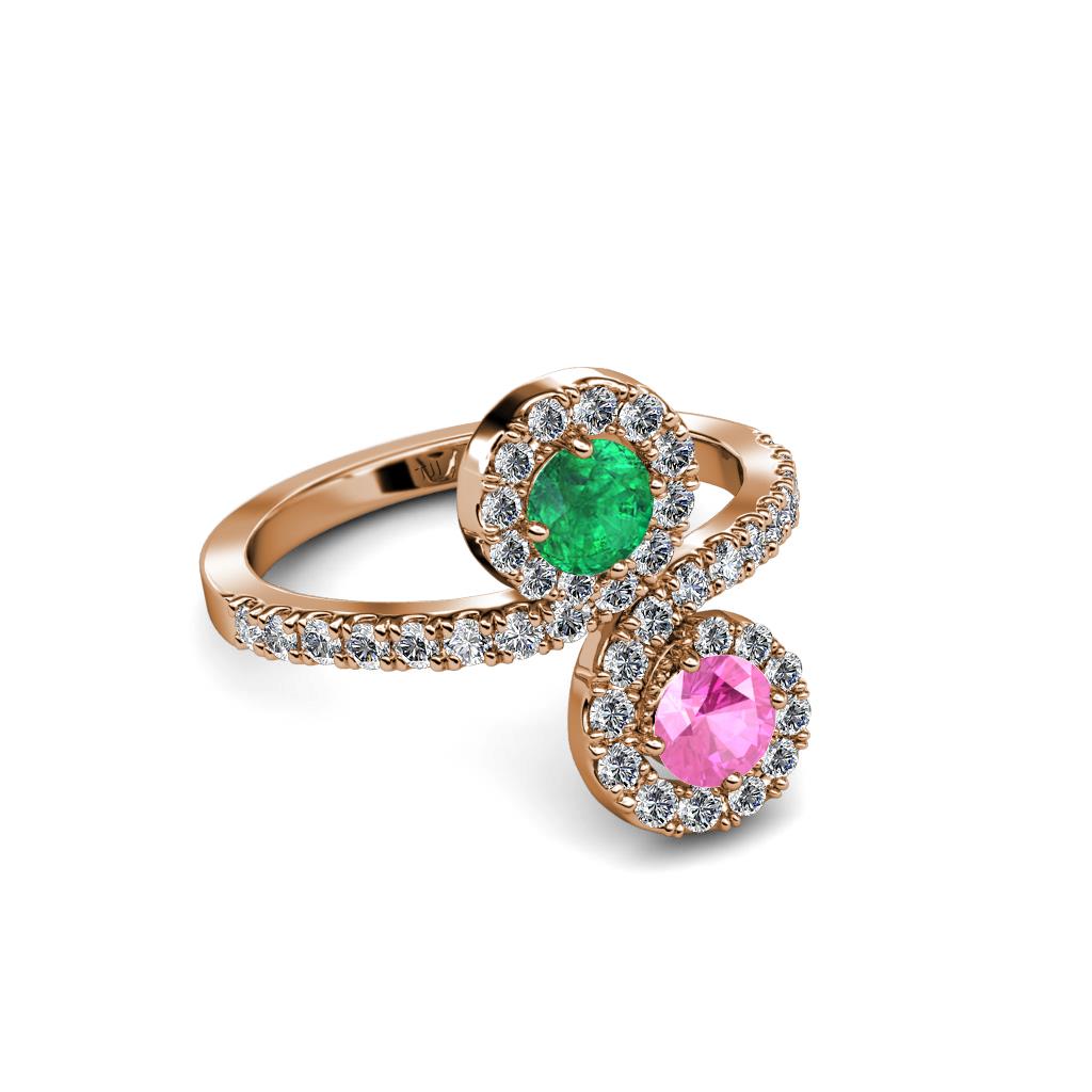 Pink Sapphire and Emerald 2 Stone with Side Diamonds Womens Bypass Engagement Ring 1.23 ctw 14K Rose Gold More Details ...