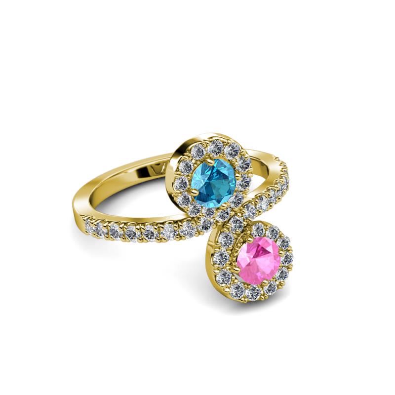 Pink Sapphire and London Blue Topaz 2 Stone with Side Diamonds Womens Bypass Engagement Ring 1.25 ctw 14K Yellow Gold More Details ...