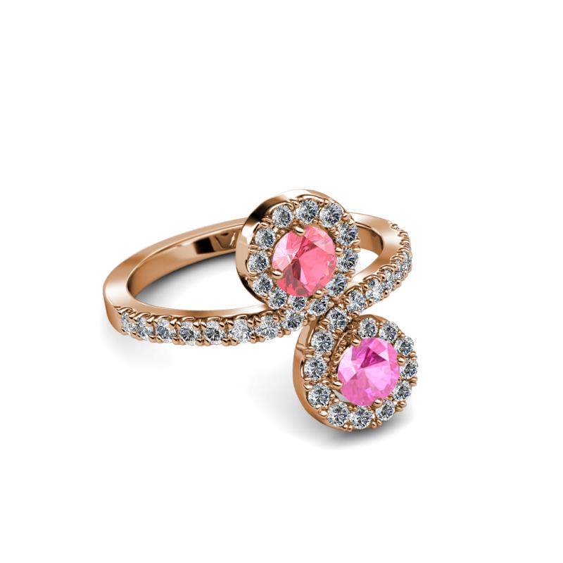 Pink Sapphire and Pink Tourmaline 2 Stone with Side Diamonds Womens Bypass Engagement Ring 1.23 ctw 14K Rose Gold More Details ...