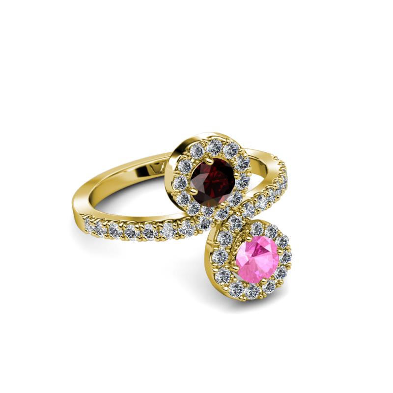 Pink Sapphire and Red Garnet 2 Stone with Side Diamonds Womens Bypass Engagement Ring 1.27 ctw 14K Yellow Gold More Details ...