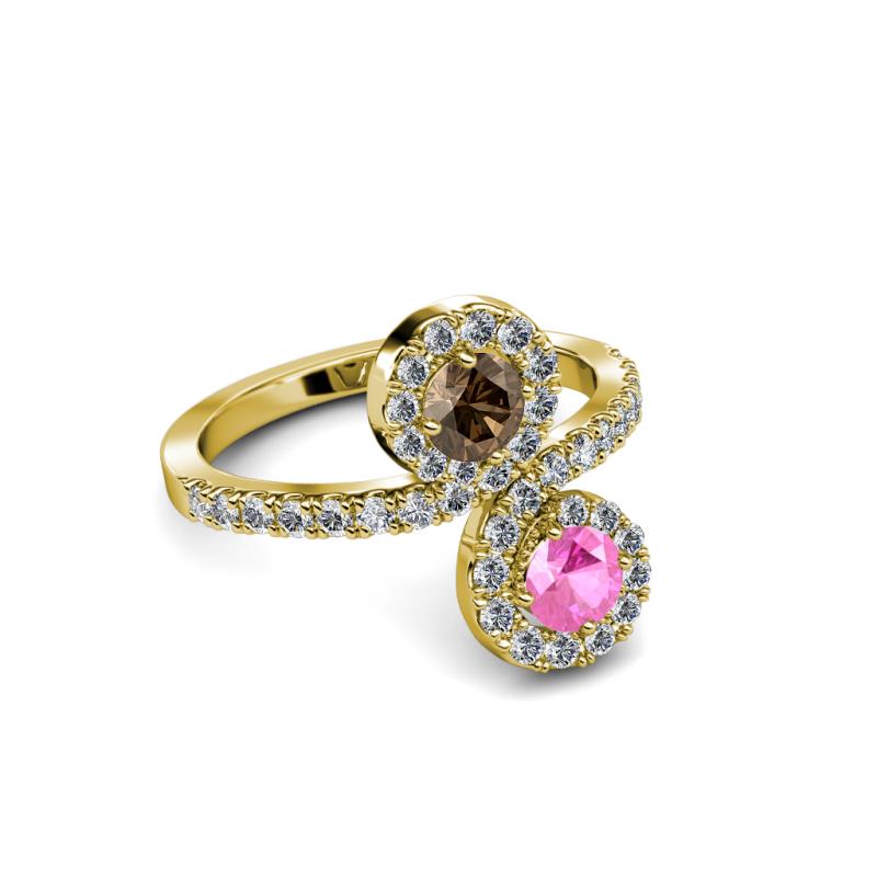 Pink Sapphire and Smoky Quartz 2 Stone with Side Diamonds Womens Bypass Engagement Ring 1.20 ctw 14K Yellow Gold More Details ...