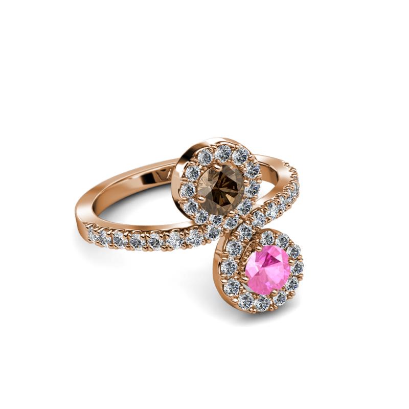 Pink Sapphire and Smoky Quartz 2 Stone with Side Diamonds Womens Bypass Engagement Ring 1.20 ctw 14K Rose Gold More Details ...